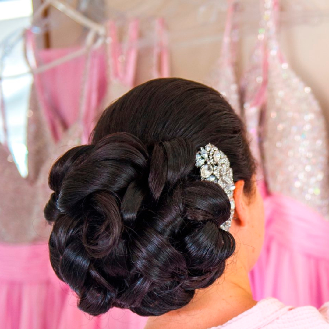This is a hairstyle I created for a "bridal photoshoot" as you can see it is structured in places then blending down to an unstructured bun, this is one of my favourite hairstyles and one that is requested often, my work is very polished.